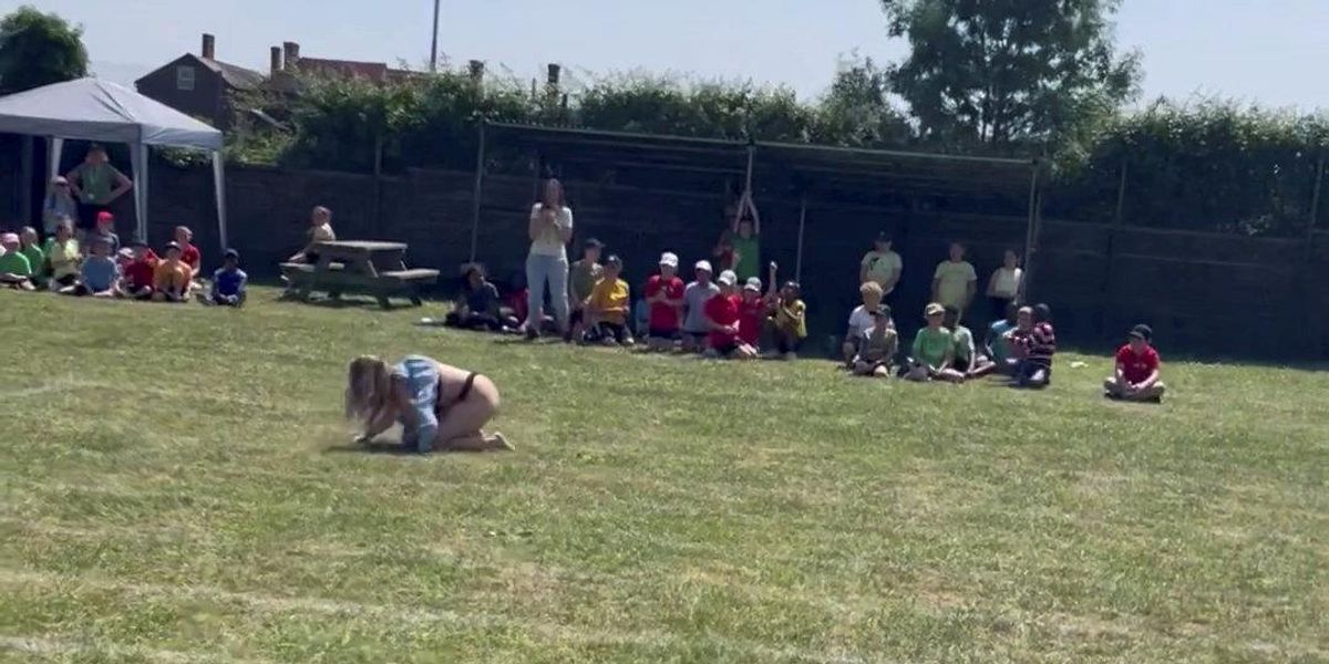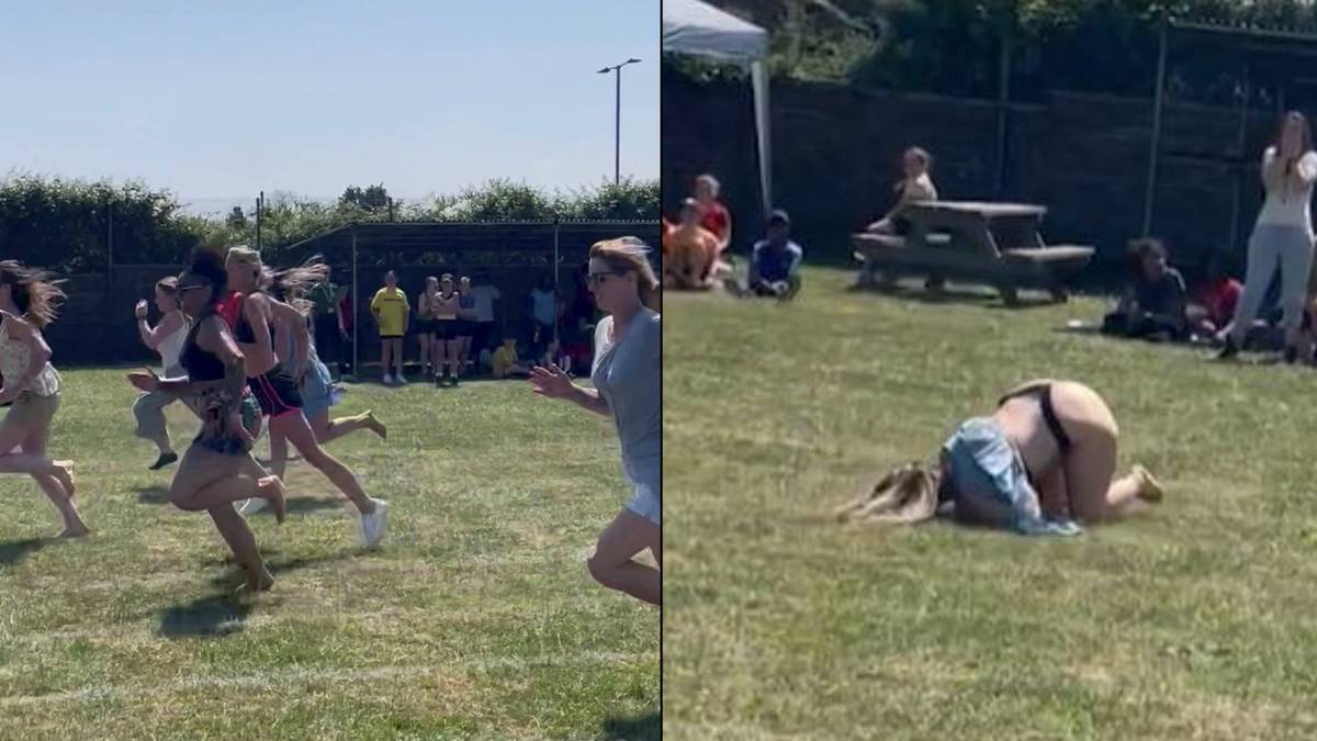 A mum managed to take the idea of embarrassing parents to a whole new level when she faceplanted during a race at her daughters school sports day and mooned the crowd in the process. 21-06-2022 1553 via hulldailymailcouk.